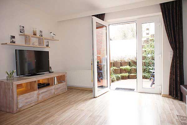 in Utersum auf FöhrDie Wohnung ist ca. 70qm groß und Allergiker gerecht, mit festen Böden und Zentralstaubsaugeranlage für gesundes Raumklima ausgestattet. Im Wohn- und Esszimmer finden sie eine gemütliche Sitzecke mit Sat-TV und blu ray Player, Radio/ CD- Spieler, Telefon und kostenlosen Wlan fürs Internet. Eine modern und voll ausgestattete Küche mit Geschirrspüler und Mikrowelle. Die Wohnung hat 2 Schlafräume mit Platz für 2-4 Personen(eventuell 5.Person möglich), sowie ein Duschbad. Bettwäsche, Handtücher sind natürlich inklusive. Für den Kleinen Urlauber haben wir selbstverständlich auch ein Kinderbett und einen Hochstuhl zur Verfügung. Ebenfalls gehört zu dieser Wohnung eine Terrasse Richtung Garten.
